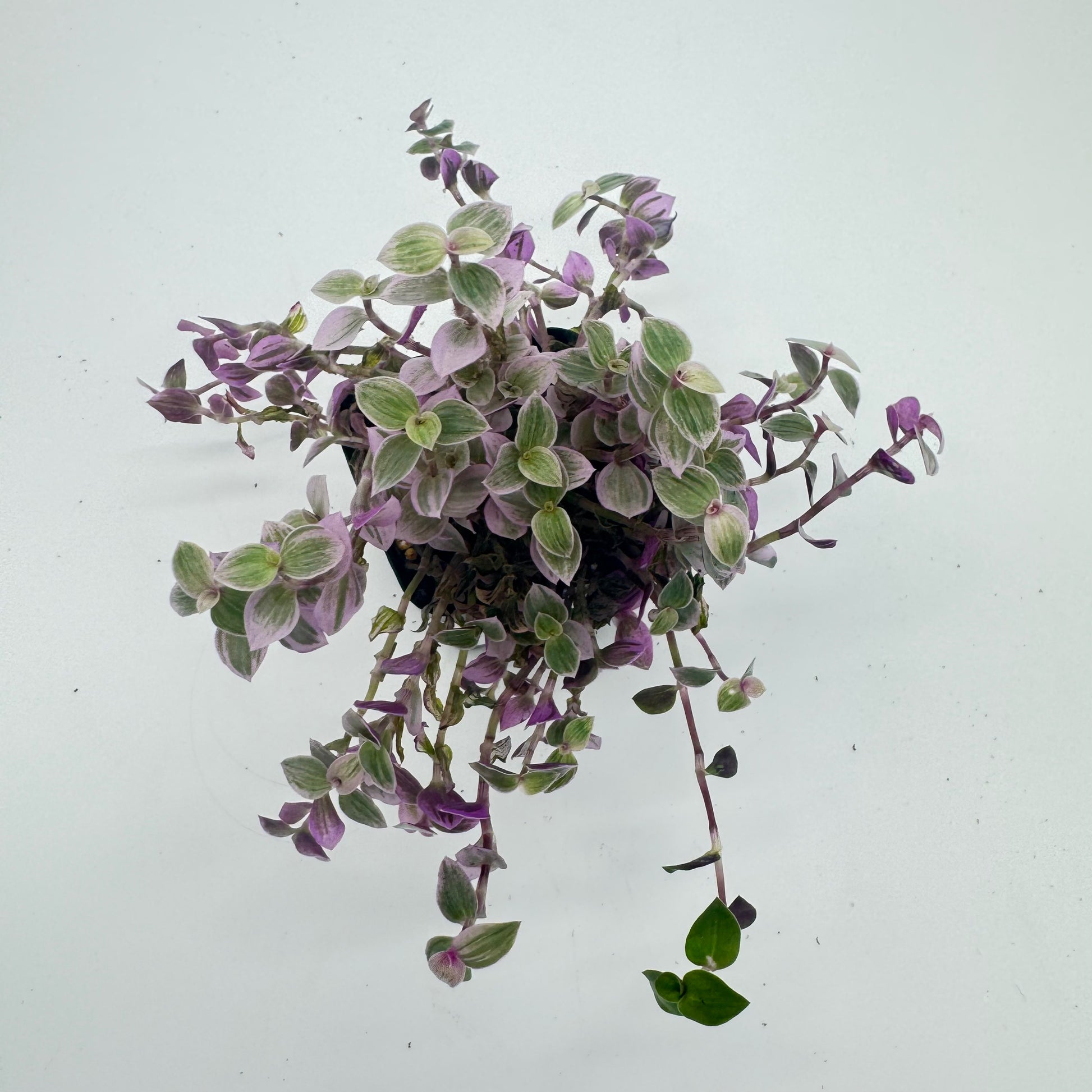 Callisia repens f. variegata 'Pink Lady' is a charming and compact trailing plant known for its petite, teardrop-shaped leaves variegated in shades of soft pink, creamy white, light green, and lavender. The delicate, pastel coloration and dense, cascading growth make it a favorite for hanging baskets, terrariums, or windowsill displays. It thrives in bright, indirect light and prefers to dry slightly between waterings. The more light it receives, the more vibrant its pink tones become.