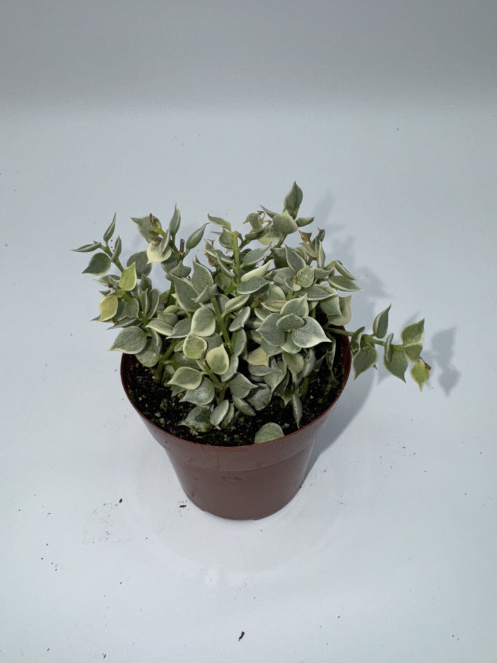 Dischidia 'Million Hearts' Variegated (often mistakenly referred to as a Hoya) is a charming trailing epiphyte known for its tiny, heart-shaped leaves edged in creamy white or pale yellow variegation. Its delicate vines cascade beautifully, making it perfect for hanging baskets, terrariums, or small shelf displays. Though commonly confused with Hoyas due to similar care needs and appearance, Dischidia is a distinct genus. This variety thrives in bright, indirect light and prefers to dry slightly between waterings.